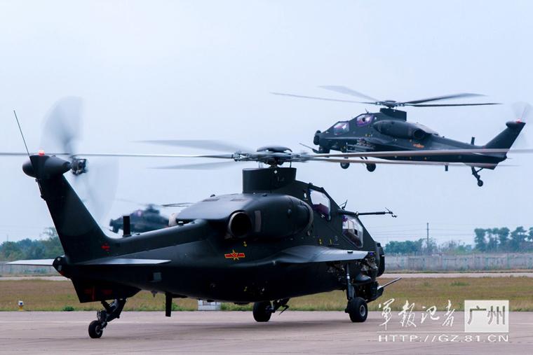 An army aviation brigade of Guangzhou Military Region conducts a day and night flight training for the Z-10 attack helicopter formation in late June. (Photo/gz.81.cn)