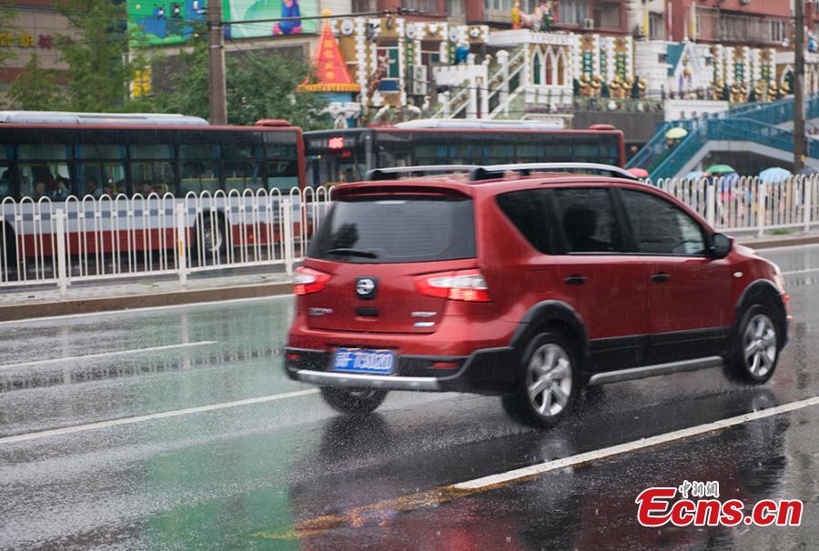 Beijing sees more rainfalls on Friday, July 17, 2015, as local weather bureau issues a yellow alert for rainstorm and a blue alert for thunder and lightning. (Photo: China News Service/Li Qing)