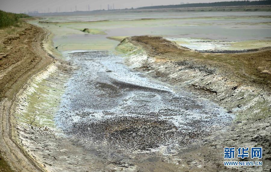 The polluted Duliujian River in Tianjin municipality, July 16, 2015. The river, which runs for 67 kilometers, is a major flood diversion project that runs through several regions in Tianjin, and it provides water for the Beidagang Wetland, a significant habitant for migratory birds in East Asia. Companies based along the river's banks have been polluting its waters for ten years. Residents living near the river complain about the bad smell, diminished harvests, and suspicious deaths of poultry. (Photo/Xinhua)