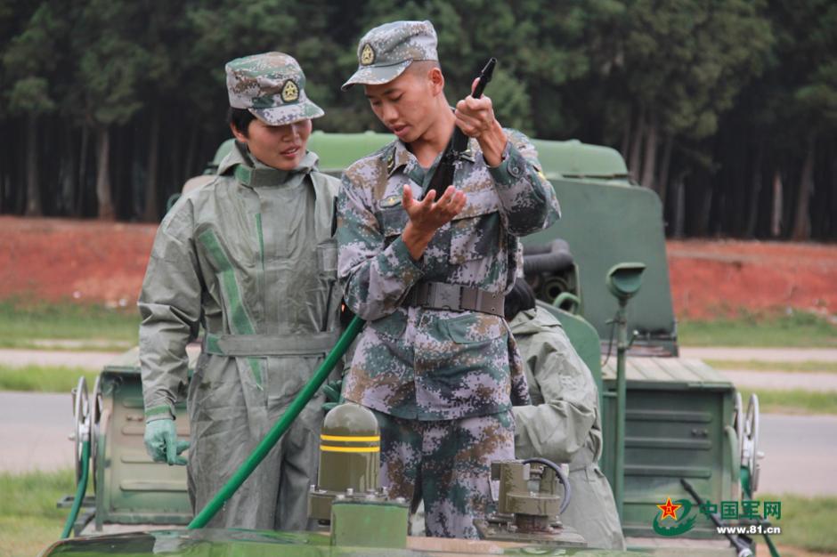 Photo shows the training scene of the only woman CBRN (Chemical, biological, radiological and nuclear) emergency rescue team in southwest China's Yunnan province in July. (Photo/81.cn)