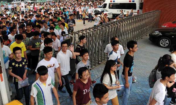 | "Gaokao" candidates walk into an exam site of the national college entrance exam at Hefei World Foreign Language School in Hefei.(Photo/Xinhua) |