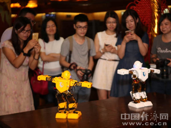 | Two robots dance to the music of "Gangnam Style" at the seminar. (Photo/ ce.cn) |