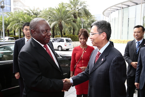 South African Vice President Matamela Cyril Ramaphosa visits Huawei’s headquarter in Shenzhen, China, and meets with the company’s executive board director Jason Li, on July 17th 2015.