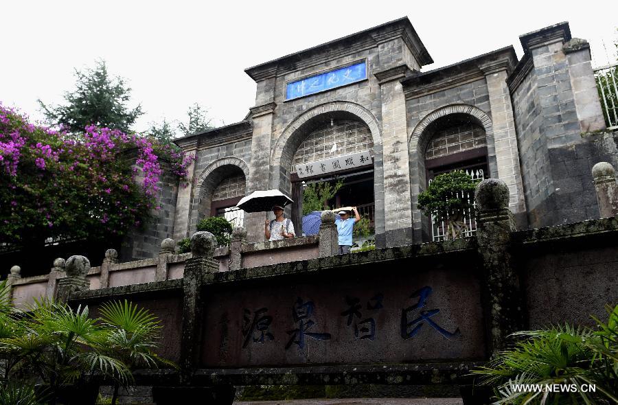 People visit Heshun Library in Heshun Town of Tengchong County, southwest China's Yunnan Province, July 20, 2015. Founded in 1928 with donations by overseas Chinese returning to their hometown Heshun, Heshun Library is China's oldest village library famous for its impressive collection of books and architectural complex with Chinese and Western elements combined. (Xinhua/Lin Yiguang)
