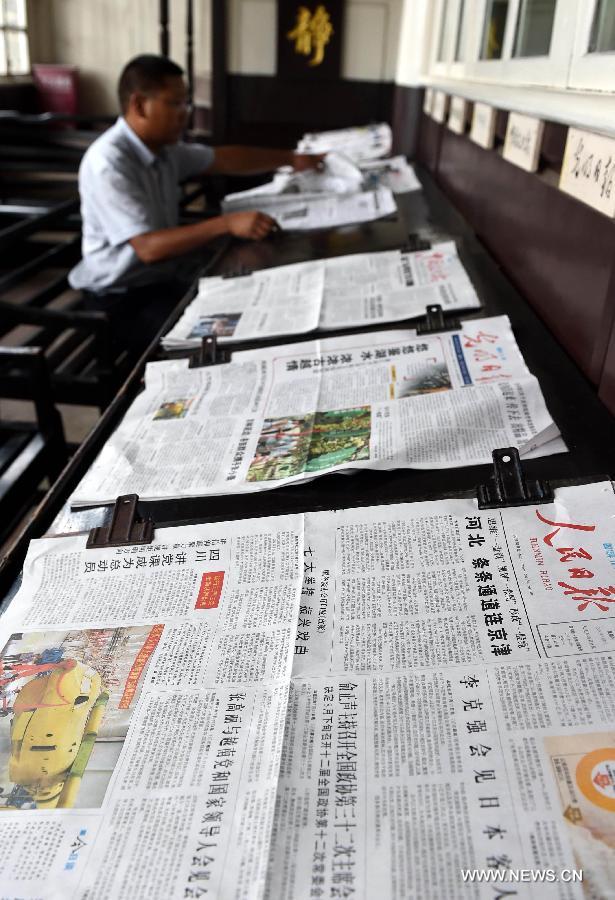 A visitor reads newspaper in Heshun Library in Heshun Town of Tengchong County, southwest China's Yunnan Province, July 20, 2015. Founded in 1928 with donations by overseas Chinese returning to their hometown Heshun, Heshun Library is China's oldest village library famous for its impressive collection of books and architectural complex with Chinese and Western elements combined. (Xinhua/Lin Yiguang)