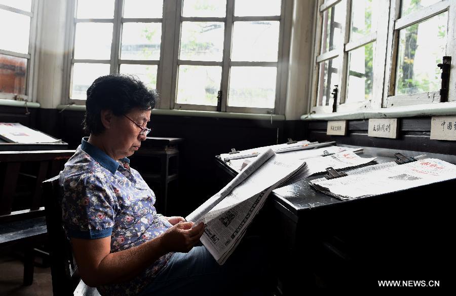 A woman reads newspaper in Heshun Library in Heshun Town of Tengchong County, southwest China's Yunnan Province, July 20, 2015. Founded in 1928 with donations by overseas Chinese returning to their hometown Heshun, Heshun Library is China's oldest village library famous for its impressive collection of books and architectural complex with Chinese and Western elements combined. (Xinhua/Lin Yiguang)