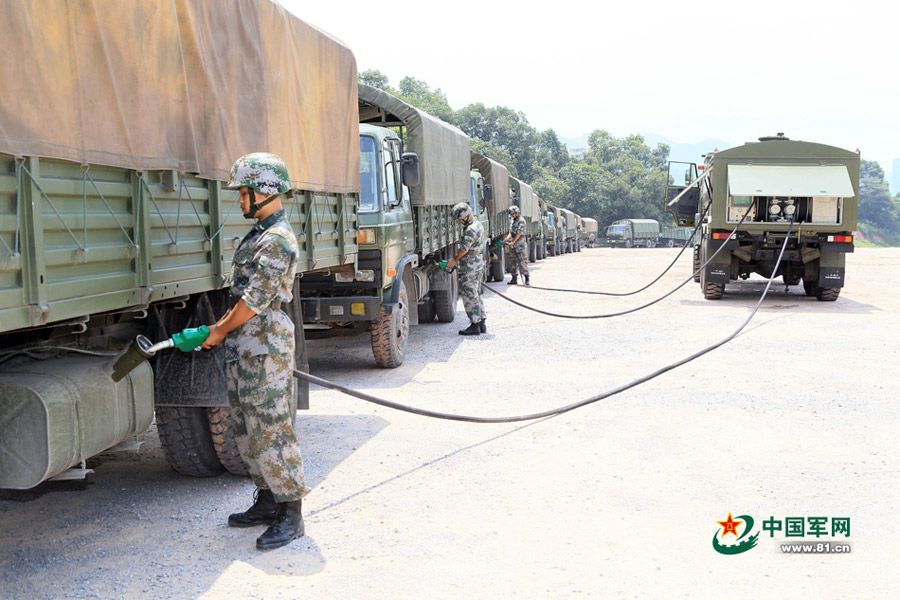 An army driver training battalion of the 13th Group Army begins the long-distance heavy-load transport training on July 16, 2015. The training will last six days with total travel distance of 1,590 km. (Photo/www.81.cn)