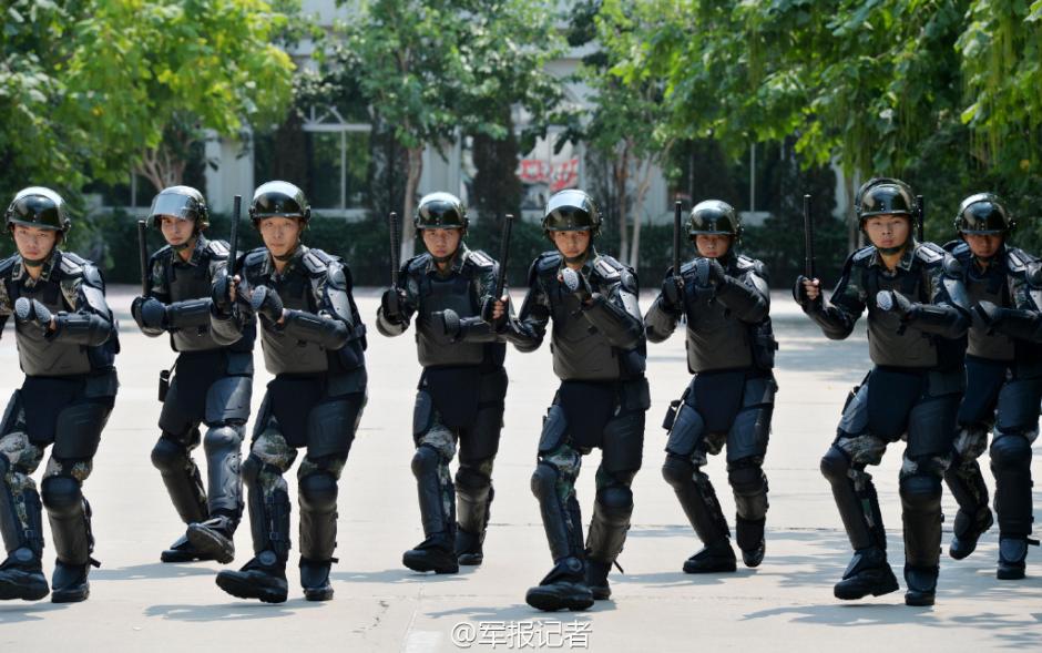 A detachment in PLA Shenyang Military Area Command takes training with new anti-terrorism equipment in middle July. The new equipment makes soldiers look like "Ironman warriors". (Photo/jz.81.cn)