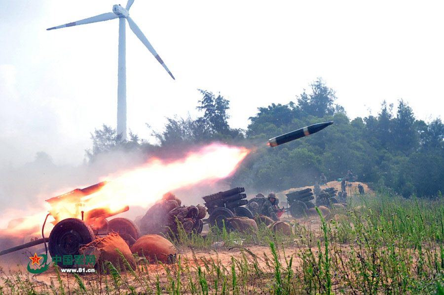 A PLA artillery regiment conducts a live fire drill on July 18, 2015, shooting at marine targets. (Photo/www.81.cn)