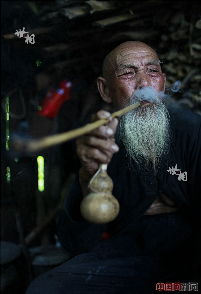 Last year, a photographer gave the two brother three long-stemmed tobacco pipes for photo shooting. They are still learning how to smoke. (China.com.cn/Liu Jiaoqing)