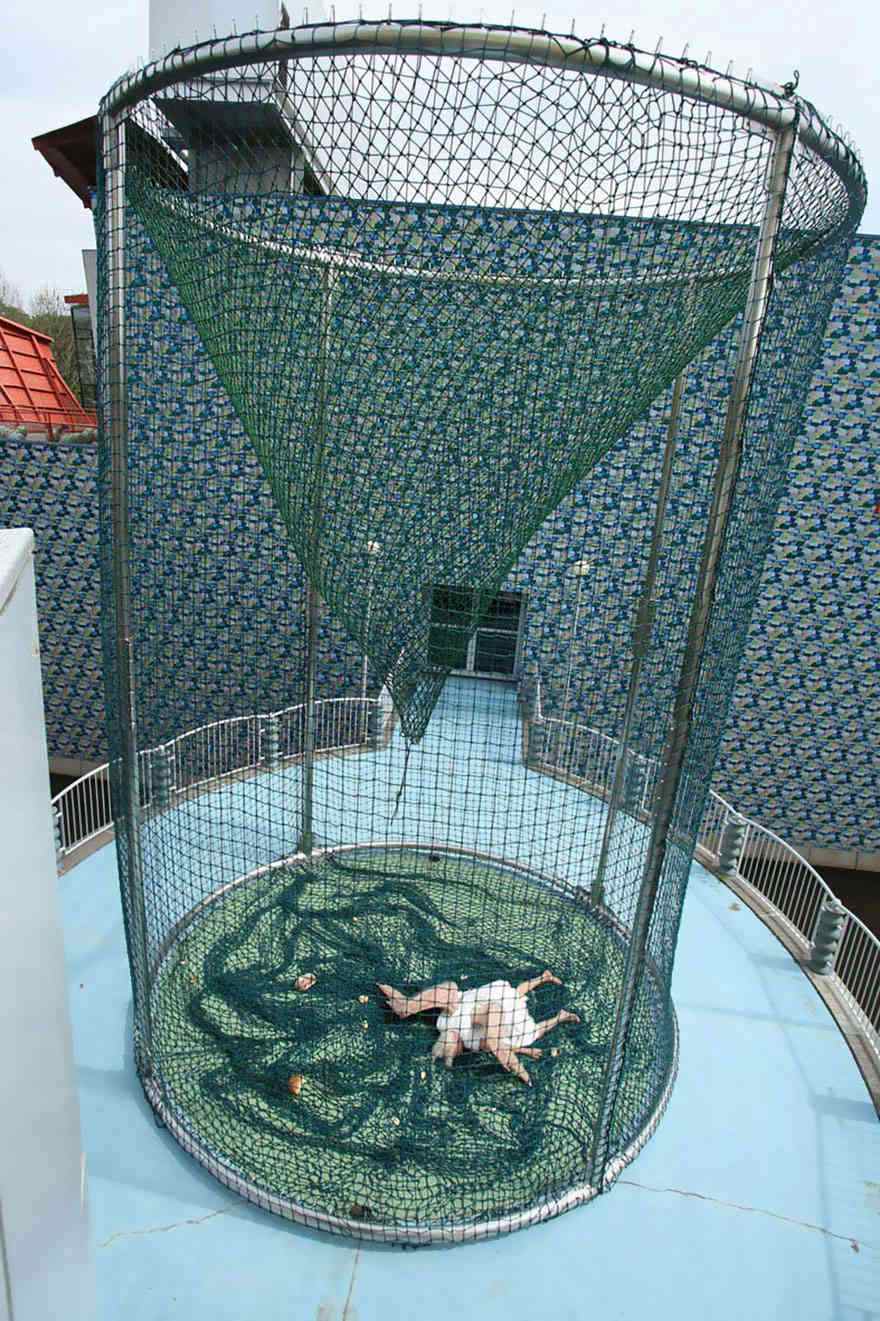 Sun Yuan and Peng Yu are two artists from Beijing who are famous for their art works made of super realistic materials like human body fat. Their latest work "Angel", which features an old lady prostrating on the ground with featherless wings on her back, has shocked many people again. This piece of work is made of silica gel, fiberglass, and stainless steel etc.