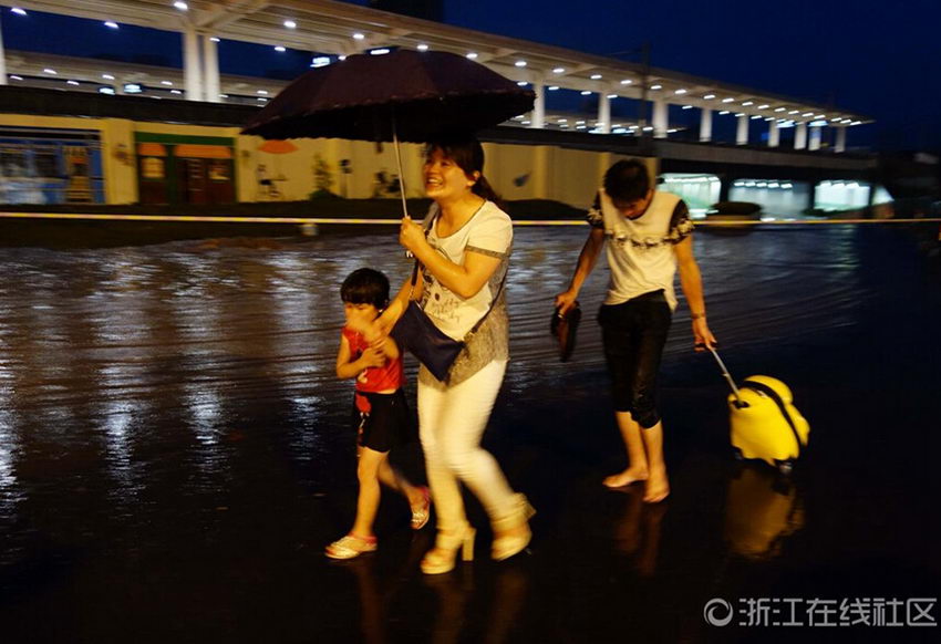 The family of Mr. Peng swim to the railway station. (Photo/ www.zjol.com.cn)