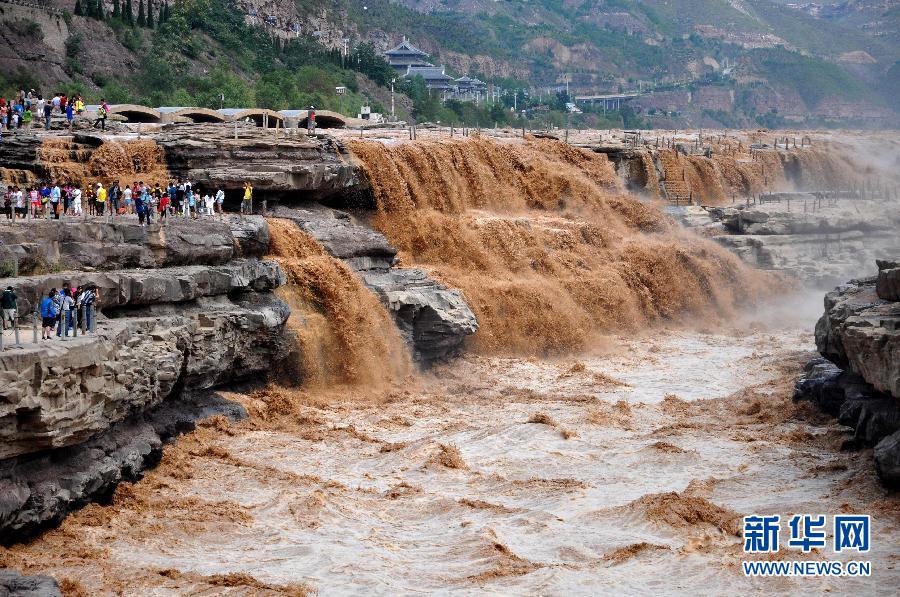 Affected by the heavy rains upstream, the Hukou Waterfall of the Yellow River, lying at the juncture between Shanxi and Shaanxi provinces