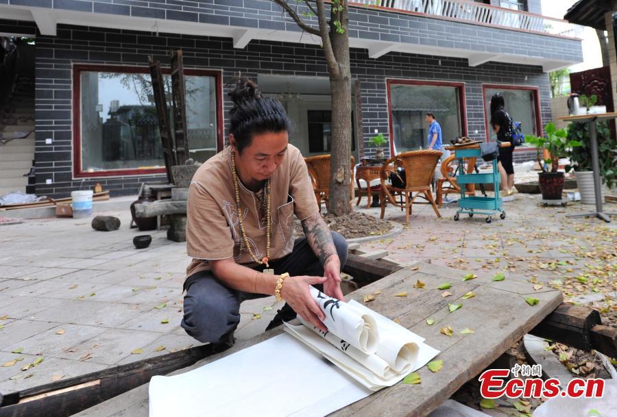 Gu Shaoqiang’s husband works to open a hostel in Jiezi Old Town in Chongzhou city, Southwest China’s Sichuan province. Gu caused an online sensation and to some extent has become a heroine to an adventure-hungry generation of working Chinese with her resignation letter of 10 Chinese characters - "The world is big and I want to see it”. She resigned from a middle school in April, and the latest development is that she didn’t actually go to see the world. Instead, she found unexpected love and decided to settle down with her husband in the old town. (Photo: China News Service/An Yuan)