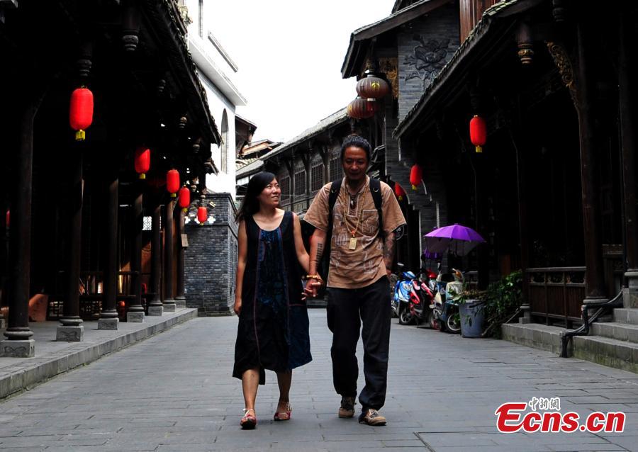Gu Shaoqiang and her husband take a walk in Jiezi Old Town in Chongzhou city, Southwest China’s Sichuan province. Gu caused an online sensation and to some extent has become a heroine to an adventure-hungry generation of working Chinese with her resignation letter of 10 Chinese characters - "The world is big and I want to see it”. She resigned from a middle school in April, and the latest development is that she didn’t actually go to see the world. Instead, she found unexpected love and decided to settle down with her husband in the old town. (Photo: China News Service/An Yuan)