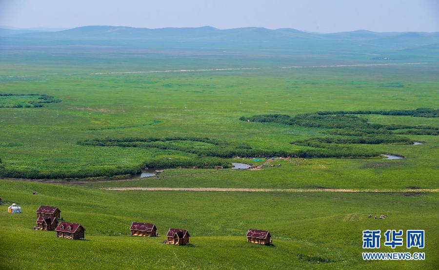 The photo taken on July 25, 2015, shows a gorgeous view of a serpentine river of the Ulla pasture in the northeast of the Xilingele League, north China's Inner Mongolia Autonomous Region. The grassland comes the most beautiful season. (Xinhua/ Lian Zhen)