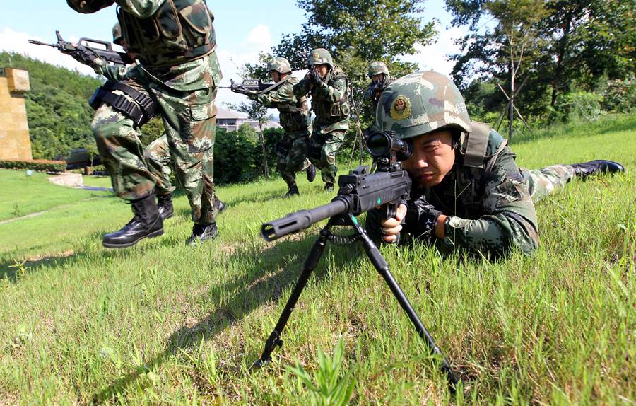 A riot police squad is in training on July 27, 2015. (Photo/ Xinhua)