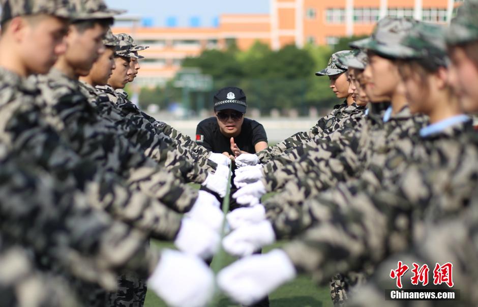 Freshmen of East Star Airlines Training College receive strict military training in Chengdu, southwest China’s Sichuan province on July 27, 2015. (CNS/Zhang Xin)