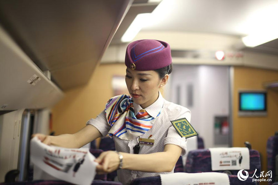 Qu Ling, 28, is a conductress on high speed train D5101. Coming from northeast China's Jilin province, she has worked in Chongqing for six years. Now she becomes a happy woman who has her own family and a nine-month-old baby.