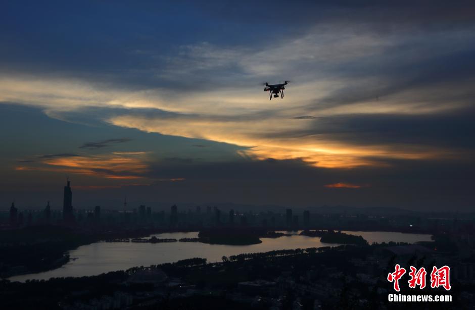 Gorgeous sunset glow appears in the sky over Nanjing city toward the evening of July 27, 2015. The red glow broke through the clouds just like a giant natural neon lamp. (Photo by China News Agency/ Fang Dongxu)