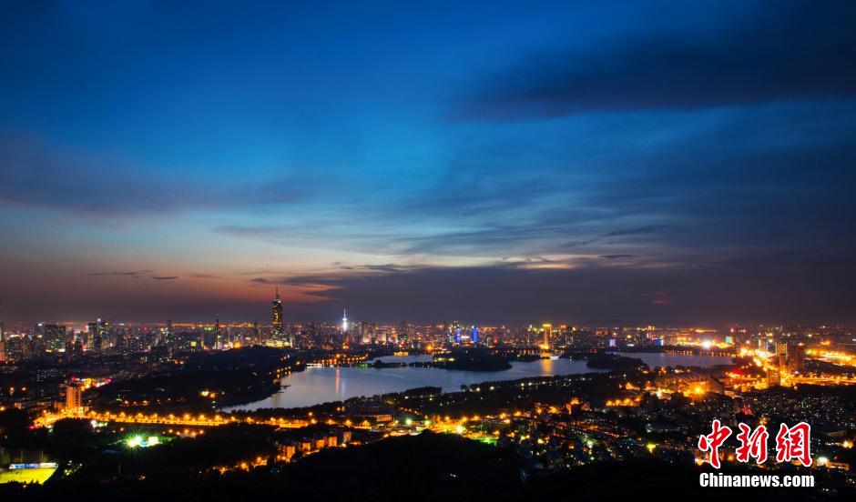 | Gorgeous sunset glow appears in the sky over Nanjing city toward the evening of July 27, 2015. The red glow broke through the clouds just like a giant natural neon lamp. (Photo by China News Agency/ Fang Dongxu) |