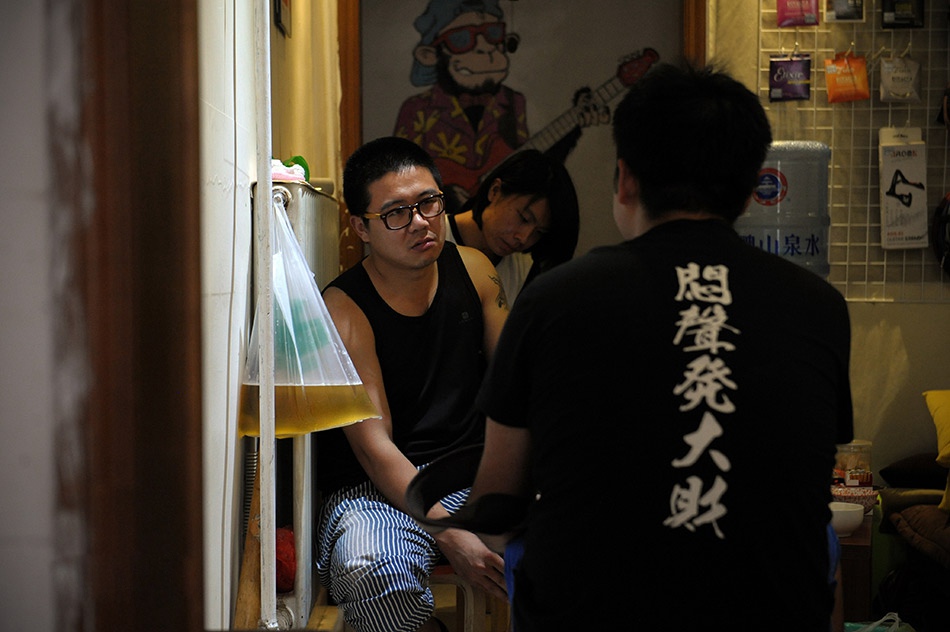 Liu returns to his store where his friends are already waiting for him. (Qingdao News/Sun Zhiwen, Yu Hong)
