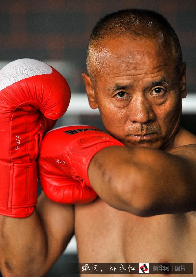 Chen Ming, 61, is a professional boxer still active on the arena. Chen started to practice Chinese martial art when he was 10. In order to maintain good competitive state and physical strength, every day he takes four-hour intensive training, in spite of his senior age.