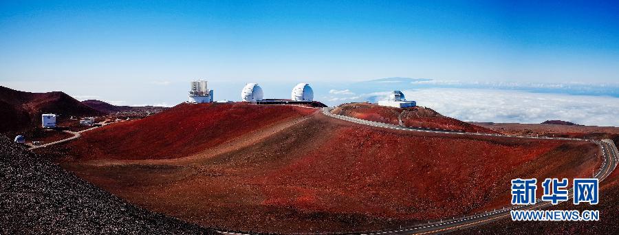 There are 12 astronomical telescopes on Mauna Kea volcano, of which the largest is 10-meter-diameter Keck telescope (two in the middle).The photo was taken on Dec. 19, 2014 on the peak of Mauna Kea in Hawaii. (Photo by Zhu Wei / Xinhua)