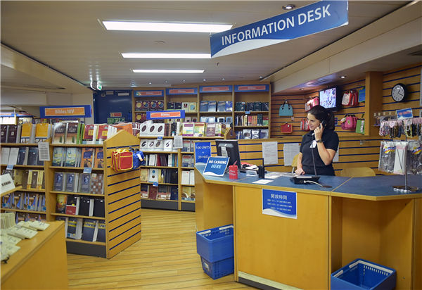 Logos Hope is a 9-storey white boat cruise, besides book exhibition at the first floor, it has a reading room, show room, virtual cabin, cafe, small theater-which can accommodate more than 400 people-,and a public space. In the book exhibition, wooden shelves are filled with all kinds of books, covering science, sports, recreation, and arts.