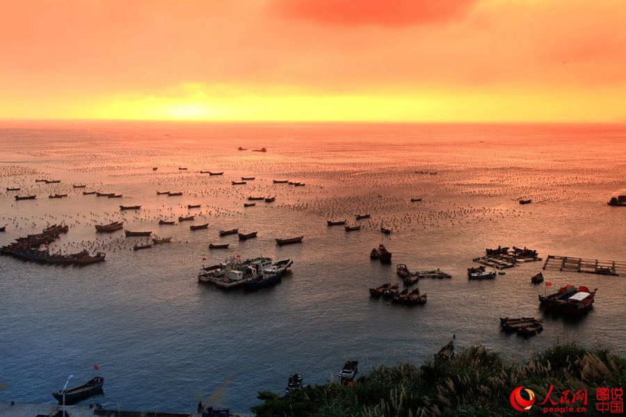 Located in the northeast of Zhoushan Islands, east China's Zhejiang Province, Gouqi(Lycium) Island is in the shape of a "T". The island got its name because Lycium Chinese Mill grows all over the island. It is also known as South Ma'an Island on the map. (Photo/People's Daily Online)