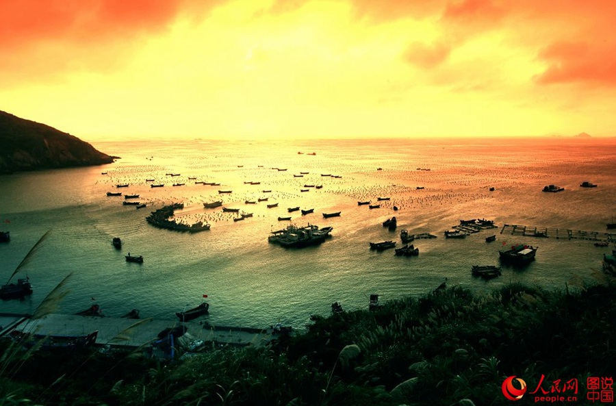 Located in the northeast of Zhoushan Islands, east China's Zhejiang Province, Gouqi(Lycium) Island is in the shape of a "T". The island got its name because Lycium Chinese Mill grows all over the island. It is also known as South Ma'an Island on the map. (Photo/People's Daily Online)