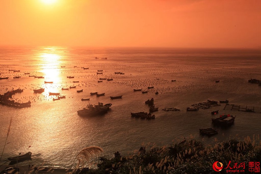 Located in the northeast of Zhoushan Islands, east China's Zhejiang Province, Gouqi(Lycium) Island is in the shape of a "T". The island got its name because Lycium Chinese Mill grows all over the island. It is also known as South Ma'an Island on the map. (Photo/People's Daily Online)