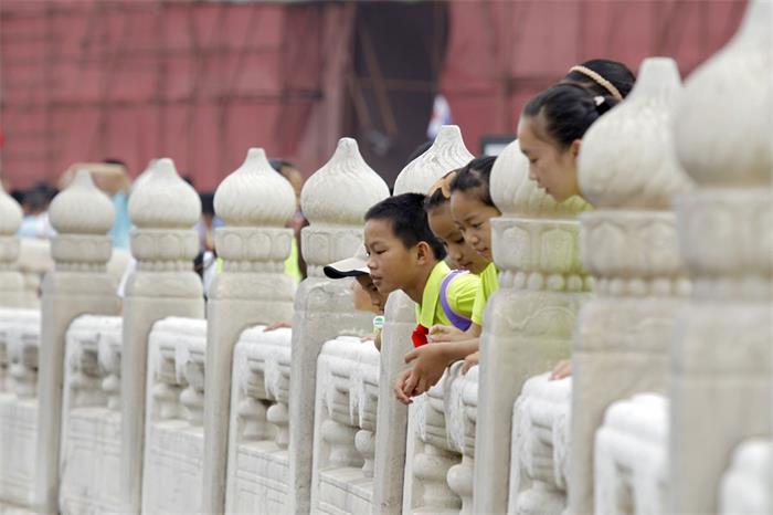 Some of the Yunnan students enjoy themselves in the Palace Museum in Beijing on July 30, 2015. [Photo by Zhu Xingxin / chinadaily.com.cn]