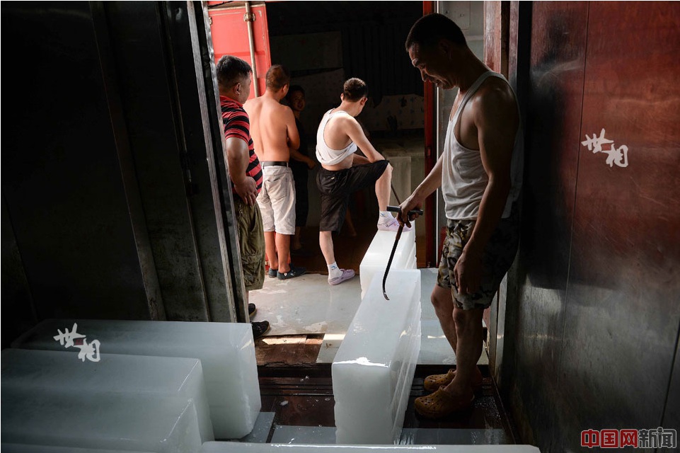 Ice cubes are removed into the truck. (China.com.cn/Lai Xinlin)