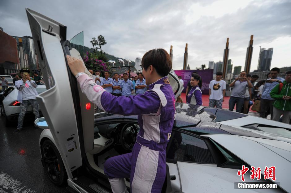 The first women rally team of Guizhou celebrates its first anniversary in the street of Guiyang, southwest China's Guizhou province on July 29, 2015. The rally team currently is the only team totally composed by female riders in China. 12 riders and their cars attracted much attention in the street. (CNS/He Junyi)