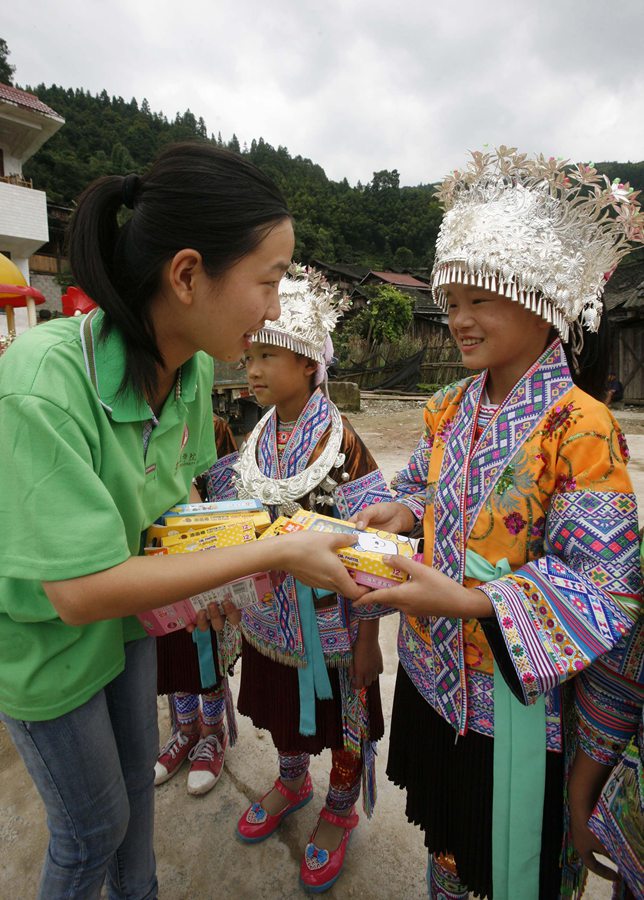 | Student from Anyang Normal University, central China's Henan Province, volunteers to come to Liudoumiao village of South China's Guangxi Zhuang Autonomous Region to give local pupils classes and accompany them in the summer vacation. (Photo/ Xinhua) |