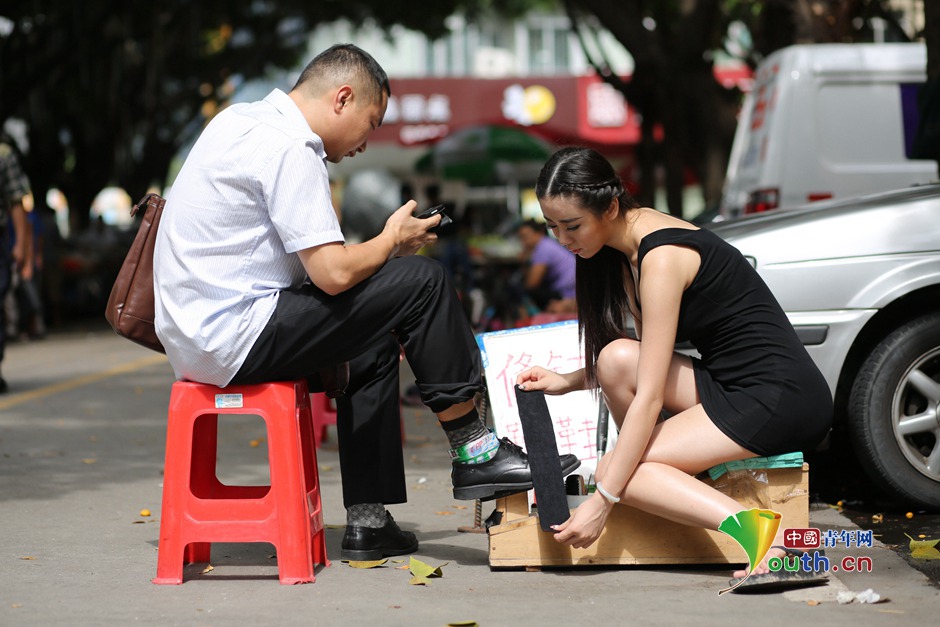 A girl in Guangzhou took a series of photos for blue-collar workers to encourage men who think their jobs are demeaning and feel down about themselves. The girl says that Aug. 3 “Men's Day” is the opposite of the International Women's Day on March 8, but men and women should be respected equally and have equal opportunities to develop themselves. "Though Aug. 3 is not a national holiday, I call on girls to give their boyfriends or husbands a day off as a way to support ‘Men's Day’," said the girl. (Youth.cn/Jia Haifeng)