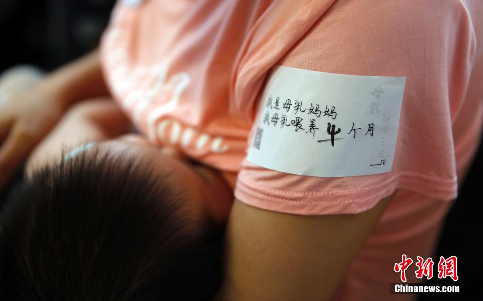 Eighty-eight mothers from China and all over the world stage a flash mob in Jinmao Tower in Shanghai, calling for public support for breastfeeding on Aug. 1, 2015. (CNS/Tang Junyi)