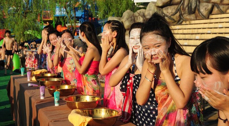 Ladies attending a matchmaking event remove their makeup in a water park in Hangzhou, Zhejiang province on Aug. 1, 2015. The event which encouraged women not to wear makeup attracted more than 30,000 singles. (Photo/ zjol.com.cn)