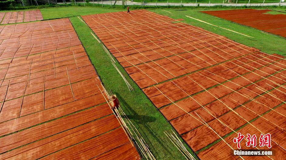 Photo shows an area to dry buttercup silk as big as a football pitch, in Shunde County, south China's Guangdong province. (Photo/CNS)