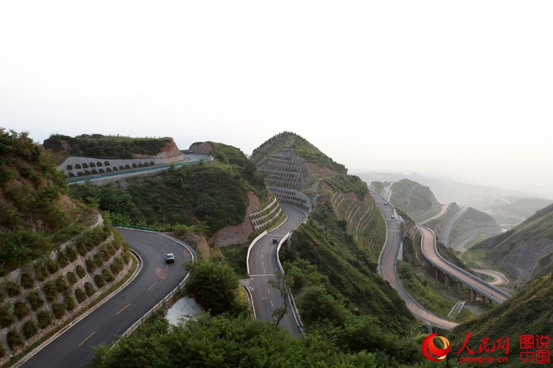 The photos show a mountain road in Lishan, Shaanxi province on Aug. 1, 2015. (Photo/people.cn)