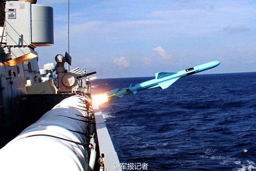 A destroyer branch of the PLA Navy’s South China Sea Fleet conducts live fire exercise recently, firing dozens of guided missiles and torpedoes. (Photo/official website of PLA Daily)