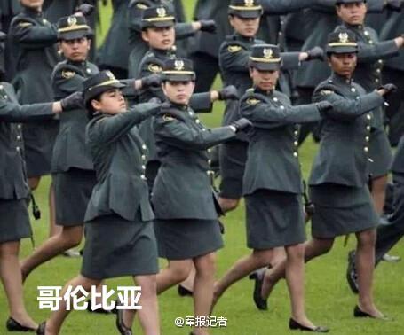 Female soldiers with exaggerated moves — Colombia.(Photo/Weibo)