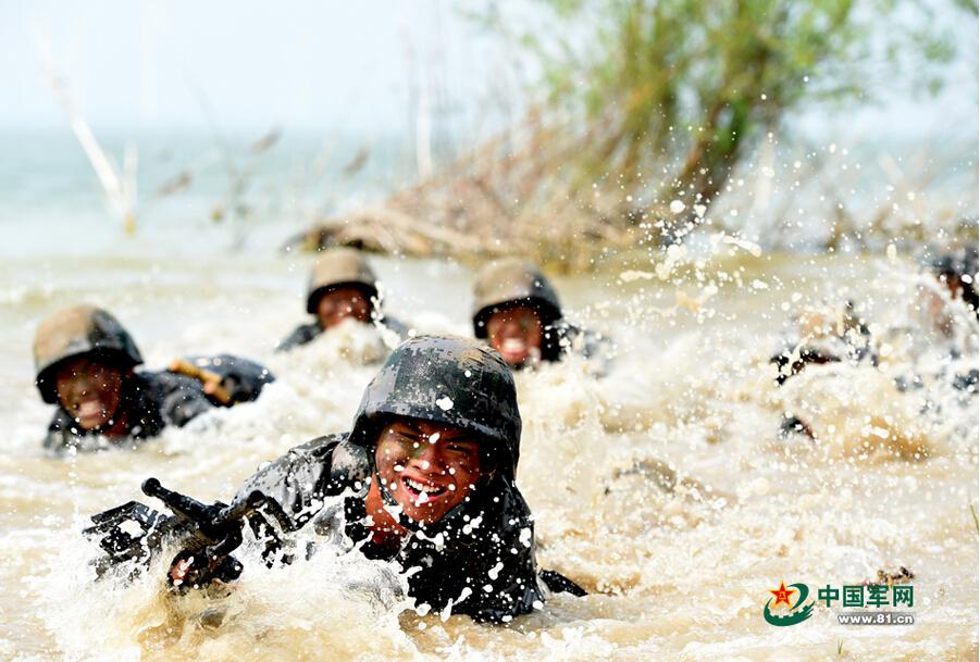 A group of photos show the PLA's devil fighting training in water. (Photo/81.cn)
