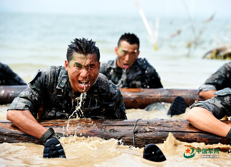 A group of photos show the PLA's devil fighting training in water. (Photo/81.cn)