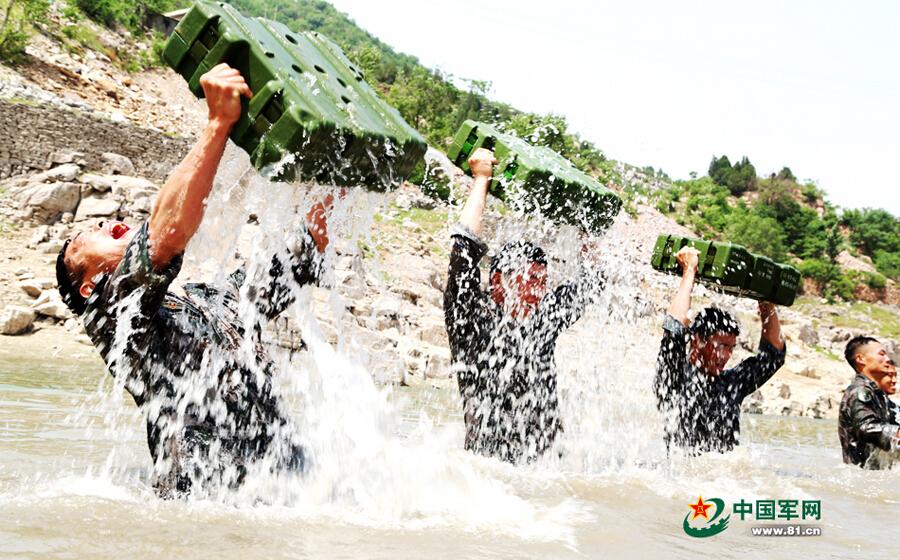 A group of photos show the PLA's devil fighting training in water. (Photo/81.cn)