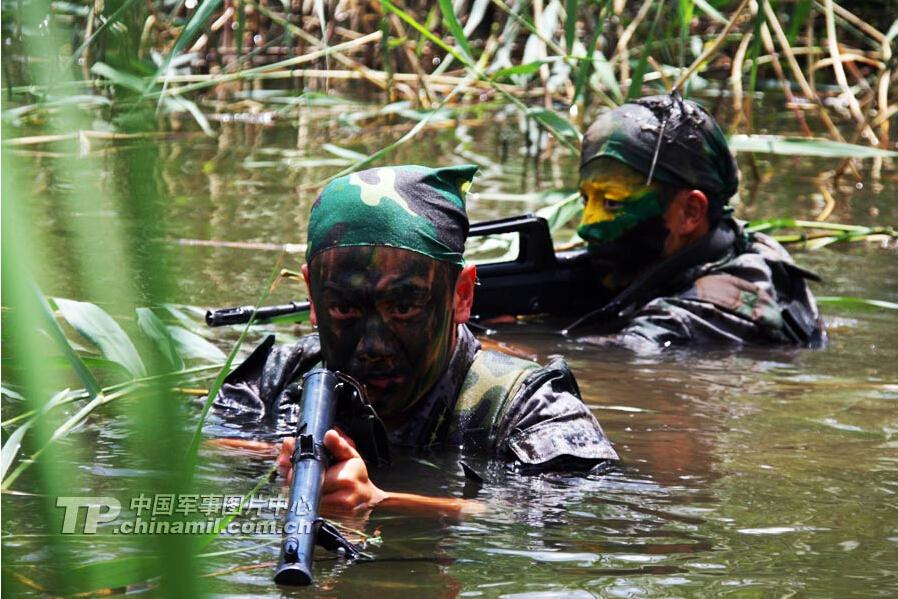 A group of photos show the PLA's devil fighting training in water. (Photo/81.cn)