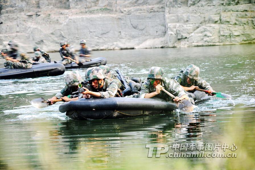 A group of photos show the PLA's devil fighting training in water. (Photo/81.cn)