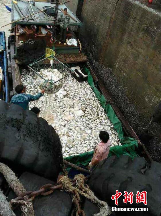 3,426 tons of gold pomfrets die in a heavy storm which lasted for several days in Qinzhou, southwest China's Guangxi, which has causes a direct economic loss of 75 million yuan. Currently, the dead fishes have basically been salvaged, and the disaster relief work by local government is underway. (CNS/Li Qiteng)