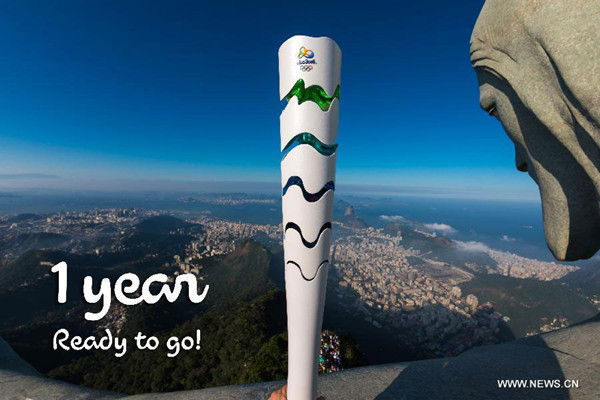 | Photo provided by Rio 2016 Organizing Committee on Aug. 5, 2015 shows the Rio 2016 Olympic torch and the statue of Christ the Redeemer on top of the Corcovado Mountain in Rio de Janeiro, Brazil. (Photo/Xinhua) |